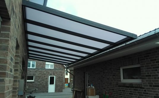 Entdecken Sie unsere Überdachungen mit mattem Sicherheitsglas, die für eine sanfte Lichtdurchlässigkeit und eine angenehme Atmosphäre im Außenbereich sorgen. Das matte Glas reduziert gleichzeitig direkte Sonneneinstrahlung und Blendeffekte. Diese Überdachungen sind eine elegante Wahl, um Ihren Außenbereich vor neugierigen Blicken zu schützen und gleichzeitig eine gemütliche Umgebung zu schaffen.